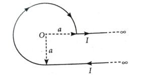 11. An infinite wire has a circular bend of radius a, and carrying a current I as shown in figure. The magnitude of magnetic field at the origin O of the arc is given by