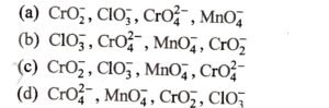 12. Which of the following arrangements represent increasing oxidation number of the central atom?