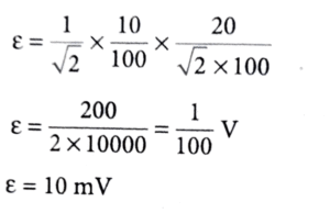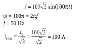 3. An alternating current is represented by the equation, i = 100√2 sin (100 πt) ampere. The RMS value of current and the frequency of the given alternating current are