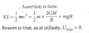 Reason (R): The maximum potential energy of a body is zero when it is projected to infinity from earth surface.