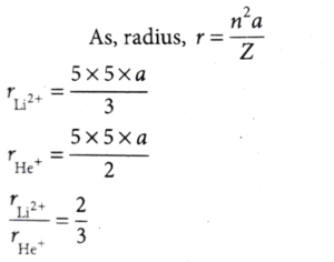 5. Considering the Bohr model of hydrogen like atoms, the ratio of the radius of 5th orbit of the electron in         Li^2+ and He^+ is
