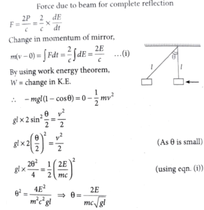 8. A small mirror of mass m is suspended by a massless thread of length l. Then the small angle through which the thread will be deflected when a short pulse of laser of energy E falls normal on the mirror