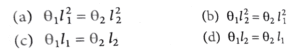 9. Two simple pendulums having lengths l_1 and l_2 with negligible string mass undergo angular displacements θ_1 and θ_2, from their mean positions, respectively. If the angular accelerations of both pendulums are same, then which expression is correct?