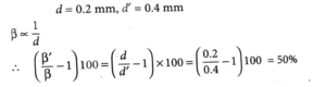 15. In a Young's double slit experiment, the slits are separated by 0.2 mm. If the slits separation is increased to 0.4 mm, the percentage change of the fringe width is