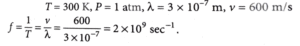 17. The mean free path and the average speed of oxygen molecules at 300 K and 1 atm are 3 × 10^-7 m and 600 m/s, respectively. Find the frequency of its collisions.