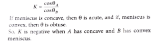19. Two liquids A and B have θ_A and θ_B as contact angles in a capillary tube. If K = cos θ_A/cos θ_B, then identify the correct statement.