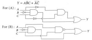20.  The Boolean expression Y=AB‾ C + A‾ C‾ can be realised with which of the following gate configurations.