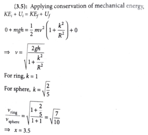 25. A circular ring and a solid sphere having same radius roll down on an inclined plane from rest without slipping. The ratio of their velocities when reached at the bottom of the plane is √(x/5) where x = __________.