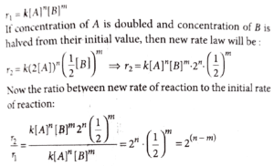 If concentration of A is doubled and concentration of B is halved from their initial value, the ratio of new rate of reaction to the initial rate of reaction (r_2/r_1) is