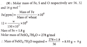 25. Fortification of food with iron is done using FeSO4.7H2O. The mass in grams of the FeSO4.7H2O required to achieve 12 ppm of iron in 150 kg of wheat is _________. (Nearest integer)