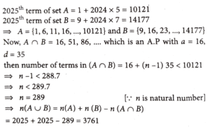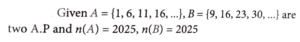 2. Let A={1, 6, 11, 16 ,.....} and B= {9, 16, 23, 30 ,.....} be the sets consisting of the first 2025 terms of two arithmetic progressions. Then  n(A∪B) is