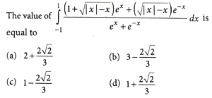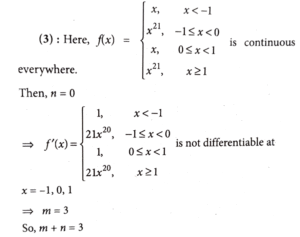 22. Let m and n be number of points at which the function f(x)=max {x, x^3, x^5 ,.....,x^21}, x ∈ R, is not differentiable and not continuous, respectively, Then m + n is equal to _________.