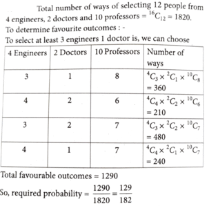 4. The probability, of forming a 12 persons committee from 4 engineers, 2 doctors and 10 professors containing at least 3 engineers and at least 1 doctor, is