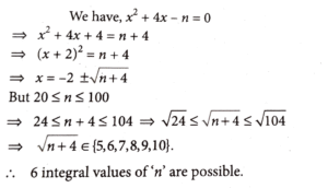 10. Consider the equation x^2 + 4x - n = 0, where n ∈ [20, 100] is a natural number. Then the number of all distinct values of n, for which the given equation has integral roots, is equal to