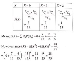 13. A box contains 10 pens of which 3 are defective. A sample of 2 pens is drawn at random and let X denote the number of defective pens. Then the variance of X is
