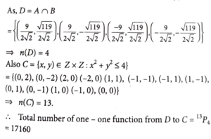 17. Consider the sets A = {(x, y) ∈ R×R :  x² + y² = 25} B ={(x, y) ∈ R×R : x²+ 9y² = 144} , C = {(x, y) ∈ Z × Z: x²+y² ≤ 4} and D =A∩B. The total number of one -one functions from the set D to the set C is:
