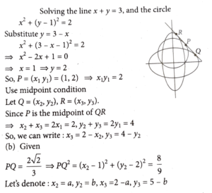21. Let C be the circle x² + (y - 1)² = 2, E_1 and E_2 be two ellipses whose centres lie at the origin and major axes lie on x-axis and y-axis respectively. Let the straight line x + y = 3 touch the curves C, E_1 and E_2 at P(x_1,y_1) , Q(x_2, y_2) and R(x_3, y_3) respectively. Given that P is the mid point of the line segment QR and PQ = 2√2/3, the value of 9(x_1 y_1 + x_2 y_2 + x_3 y_3) is equal to ___________.