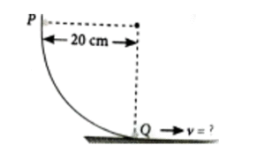 8. As per the given figure, a small ball P slides down the quadrant of a circle and hits the other ball Q of equal mass which is initially at rest. Neglecting the effect of friction and assume the collision to be elastic, the velocity of ball Q after collision will be (g = 10 m/s²)