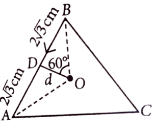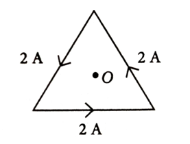 25. As shown in the figure, a current of 2 A flowing in an equilateral triangle of side 4√3 cm. The magnetic field at the centroid O of the triangle is