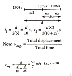 13. A horse rider covers half the distance with 5 m/s speed. The remaining part of the distance was travelled with speed 10 m/s for half the time and with speed 15 m/s for other half of the time. The mean speed of the rider averaged over the whole time of motion is x/7 m/s. The value of x is ________.