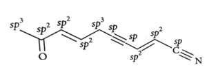 1. In the given structure, number of sp and sp² hybridized carbon atoms present respectively are
