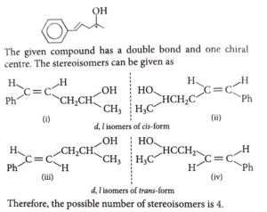 23. The possible number of stereoisomers for 5-phenylpent-4-en-2-ol is_______