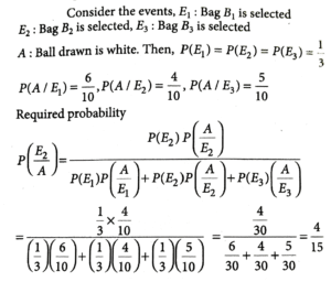 4. Bag B₁ contains 6 white and 4 blue balls, Bag B₂ contains 4 white and 6 blue balls, and Bag B_3 contains 5 white and 5 blue balls. One of the bags is selected at random and a ball is drawn from it. If the ball is white, then the probability, that the ball is drawn from Bag B2, is :