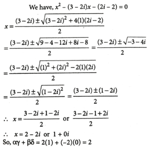 12. If α+ i β and γ + i δ are the roots of x² - (3 - 2i) x- (2i - 2) = 0, i =√-1, then α γ + β δ is equal to :