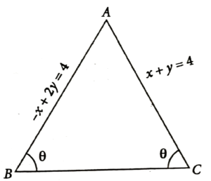 15. Two equal sides of an isosceles triangle are along - x + 2y = 4 and x + y = 4. If m is the slope of its third side, then the sum, of all possible distinct values of m, is: