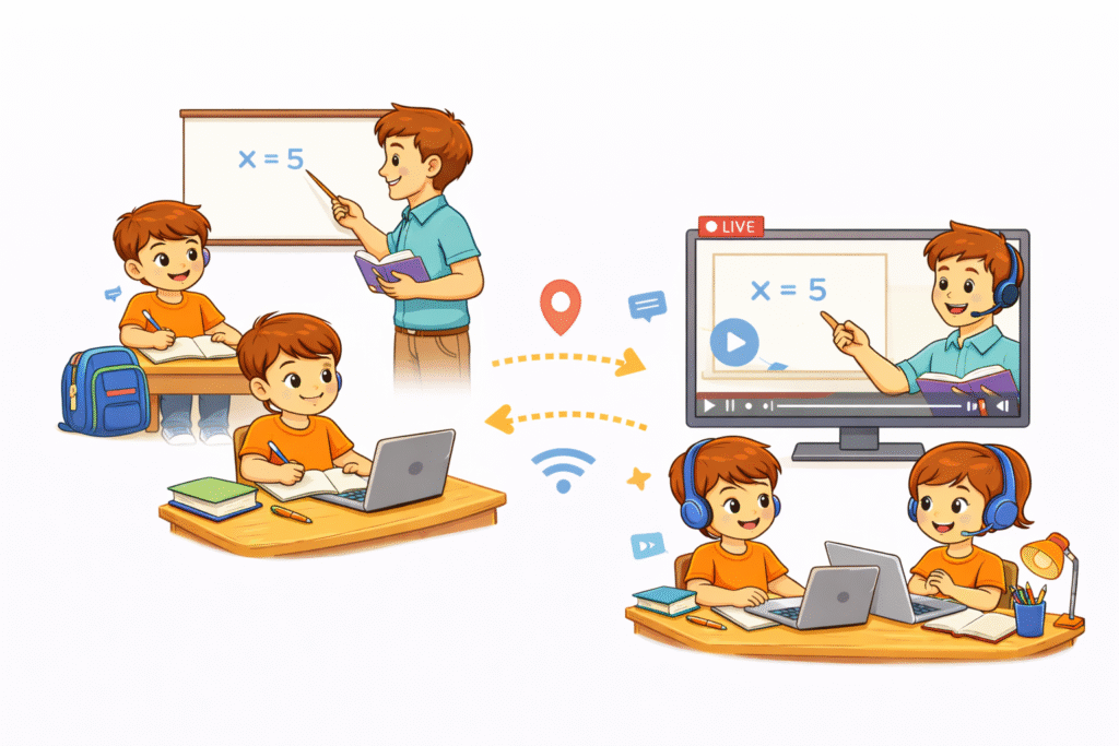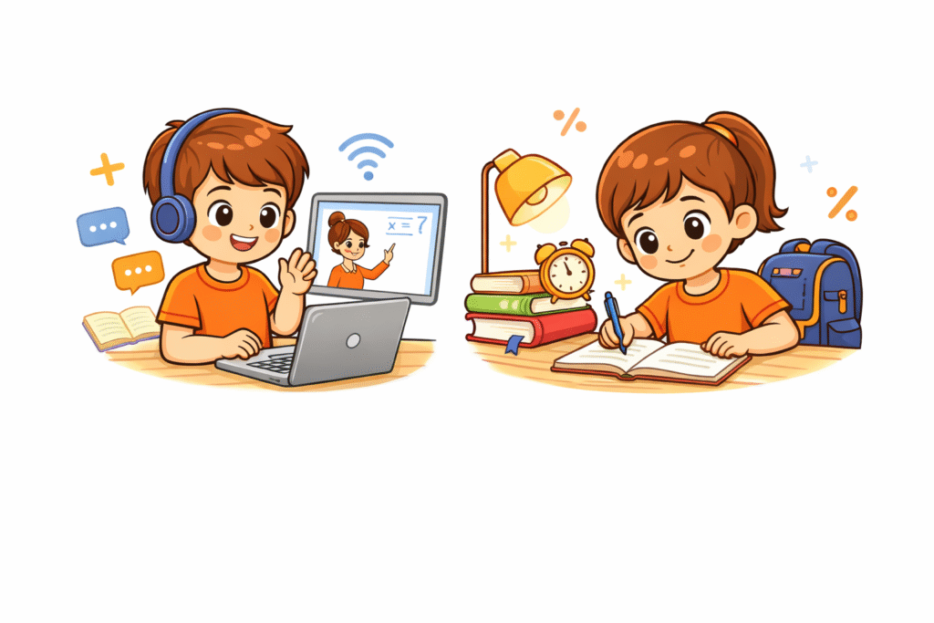 Both follow the same curriculum, teaching system, and quality standards. Parents can choose based on convenience and learning preference.