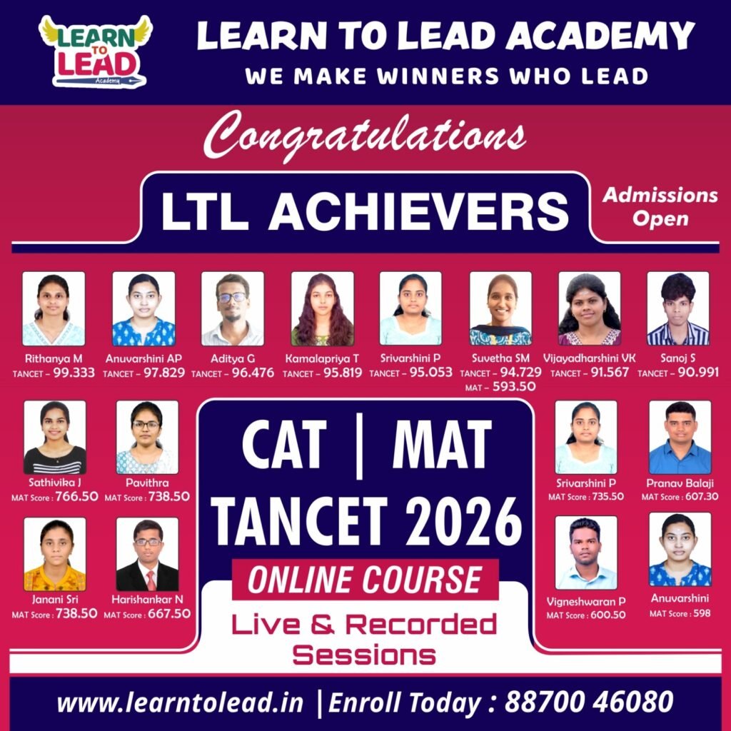 Dear Aspirants, Are you gearing up for TANCET 2026 and seeking expert guidance to ace the exam with flying colours? Look no further! Learn to Lead Academy is thrilled to announce the commencement of admissions for our comprehensive online coaching program for TANCET 2026.